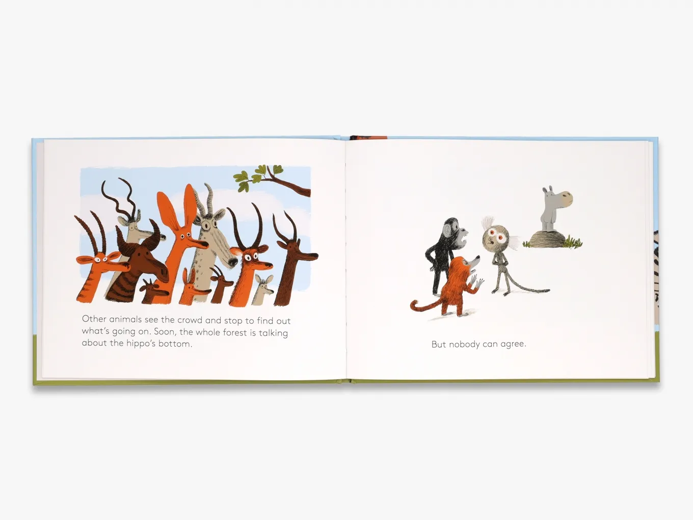 The hippopotamus is feeling worried. Is his bottom too big? All the other animals have an opinion, but nobody can agree and things soon start to get out of hand. Is there a way to sort out the mess?
