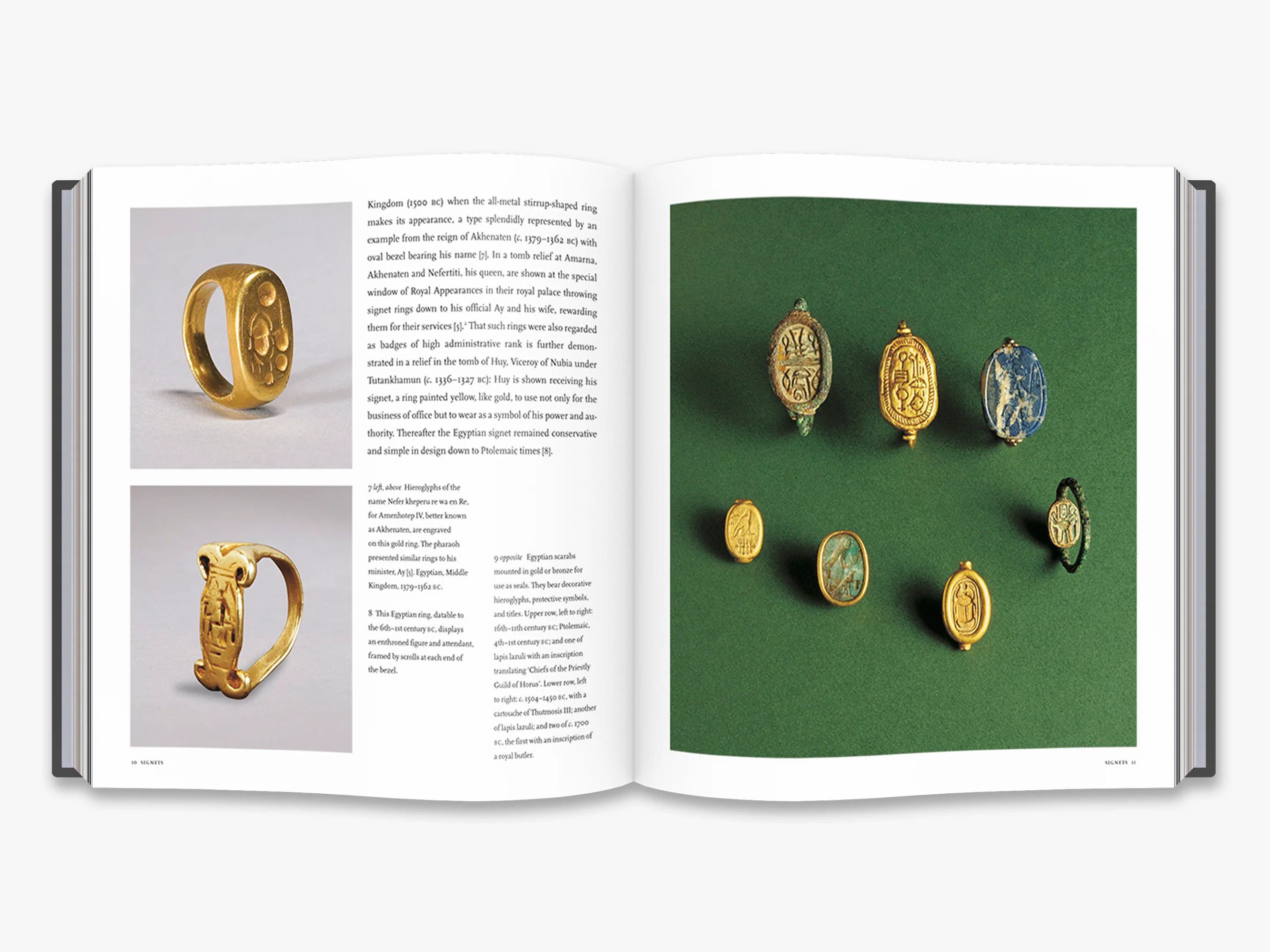 Rings of all periods are included ā from ancient Egypt, Greece and Rome through the Middle Ages and Renaissance up to the 20th century. The rings are drawn not only from great museums but from private collections, pre-eminently that of the noted gem dealer and art patron Benjamin Zucker.
